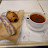 ホイップクリームとイチゴを添えていただきました。